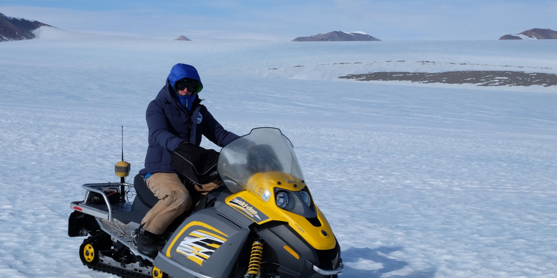 We used the GNSS to survey the ice fields, not just the proposed runway area, but the surrounding mountain peaks, to ensure we could gather enough data to position the runway in the best location. Knowing that a lot of ground needed to be covered quickly and effectively, we mounted the GNSS to skidoos. It proved useful having the Bing map background on the field controllers fixed to skidoos to help us orientate ourselves on the glacier – especially when the seemingly clear vistas lured you into a false sense of security when it came to measuring mountains. Distances and visibility of mountain peaks distorted judgment and they appeared much closer than they really were.