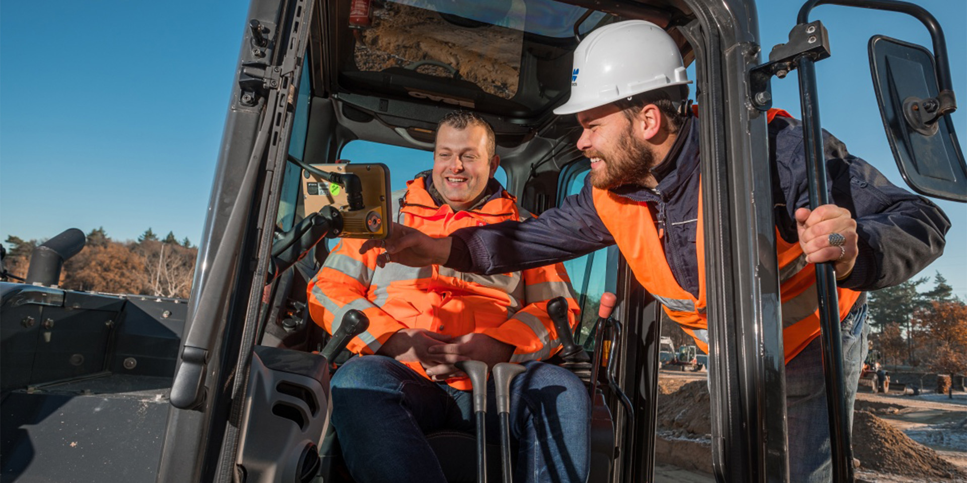 Jazeker. Heb je bijvoorbeeld een Topcon Machine Control systeem gehuurd, of geleend van de buurman? Dan is het heel eenvoudig dit systeem aan te sluiten. Het basissysteem dat op de machine zit is uitwisselbaar met andere systemen die ook een CANBUS-aansluiting hebben. Upgrade erop klikken, configureren en klaar. Zorg er wel even voor dat je de bijbehorende machineconfiguratie inlaadt waarin de kalibratie is opgeslagen door onze Field Service specialisten. Je kunt er daarna direct mee aan de slag. Kwestie van plug & play.|