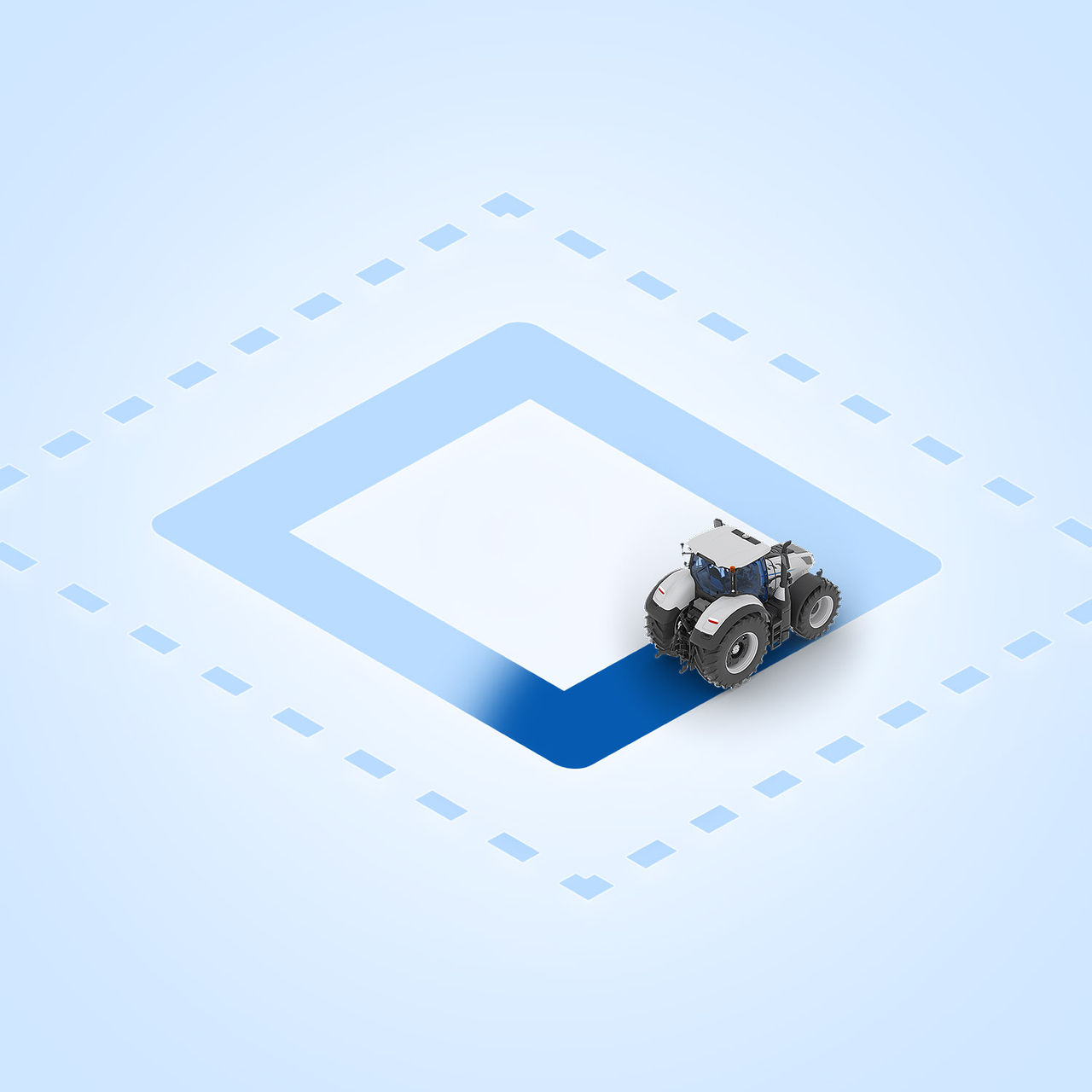 Genereert een geleidingslijn op basis van de grens, te volgen met automatische besturing om het veld maximaal te benutten.