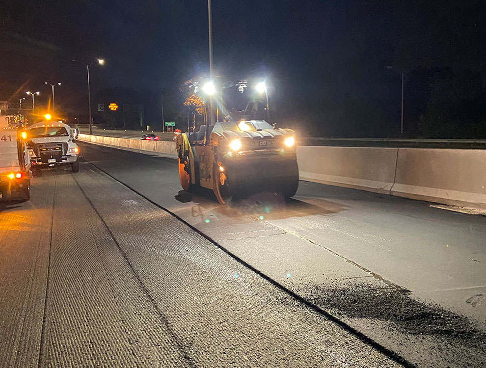 In addition to an overall aggressive 30-month schedule for the Charter Oak project, O&G’s teams faced some logistical challenges on a daily basis as well. “We have to have the pylons out by 9:00 each night and then, after paving through the night, we have to be off the highway by 5:00 a.m.,” said Williams. “So that eight-hour shift is really closer to seven.”