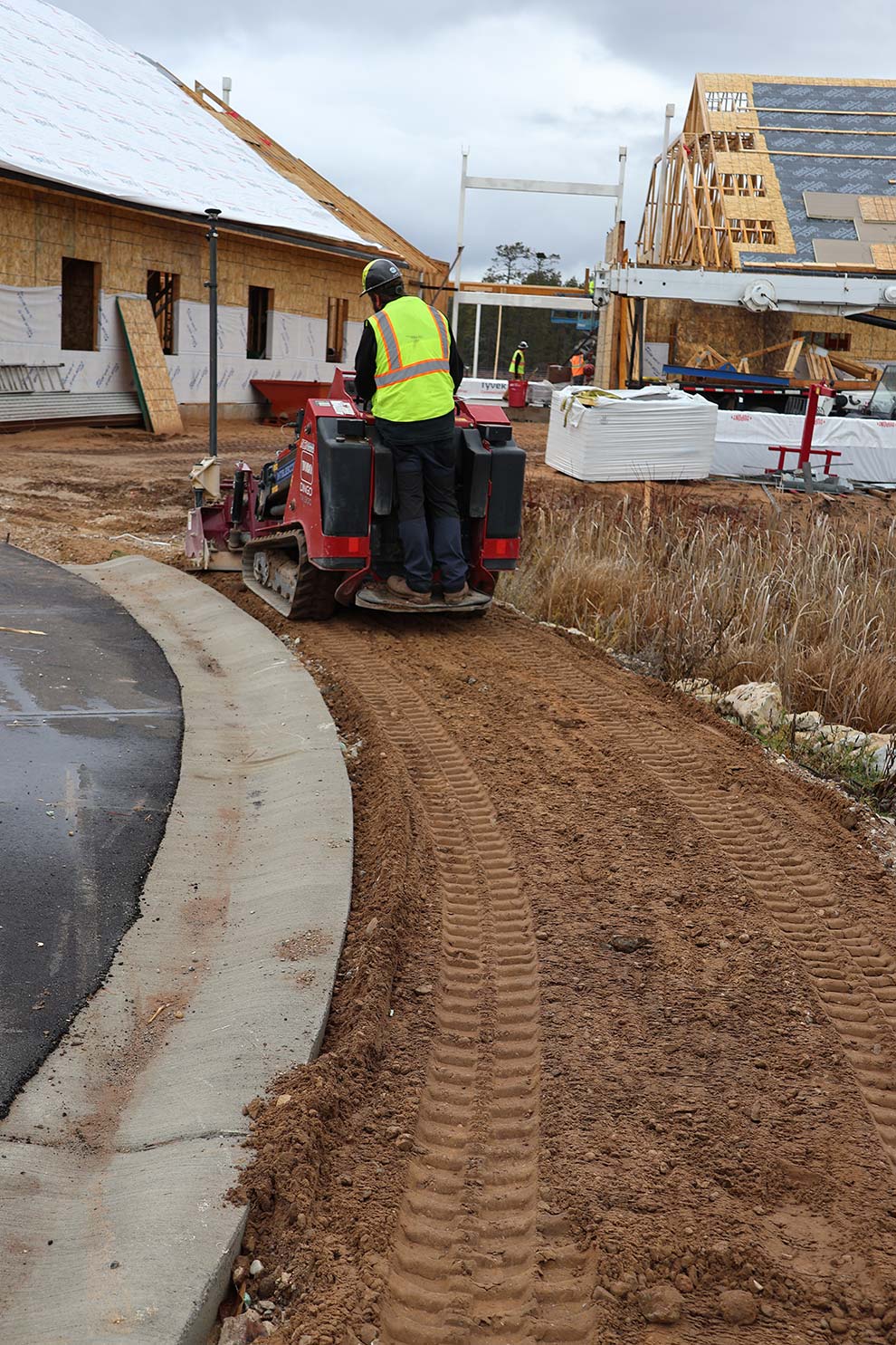 “While most of our work is larger-scale projects, for which we have a Komatsu D-51 dozer to handle, there are also a lot of times where we need a smaller machine,” he said. “We initially solved that problem with the purchase of a skid steer loader which we equipped with a laser grading system. But, in many cases, even that can be too much machine for the job at hand. For example, we had a project that called for 3,600 sq. ft. of grading — well within the skid steer’s capabilities. However, a huge number of pipe penetrations made it difficult, even with the laser system on the loader.”